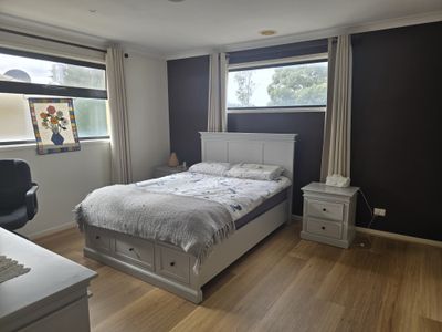 It features three generous, light-filled bedrooms upstairs, two with built-in robes, and a central bathroom with a separate shower and bath. A fourth bedroom and second bathroom with shower are located downstairs, offering flexibility and convenience. The main bedroom boasts a walk-in robe and a private ensuite complete with double vanities, spa bath, and separate shower.