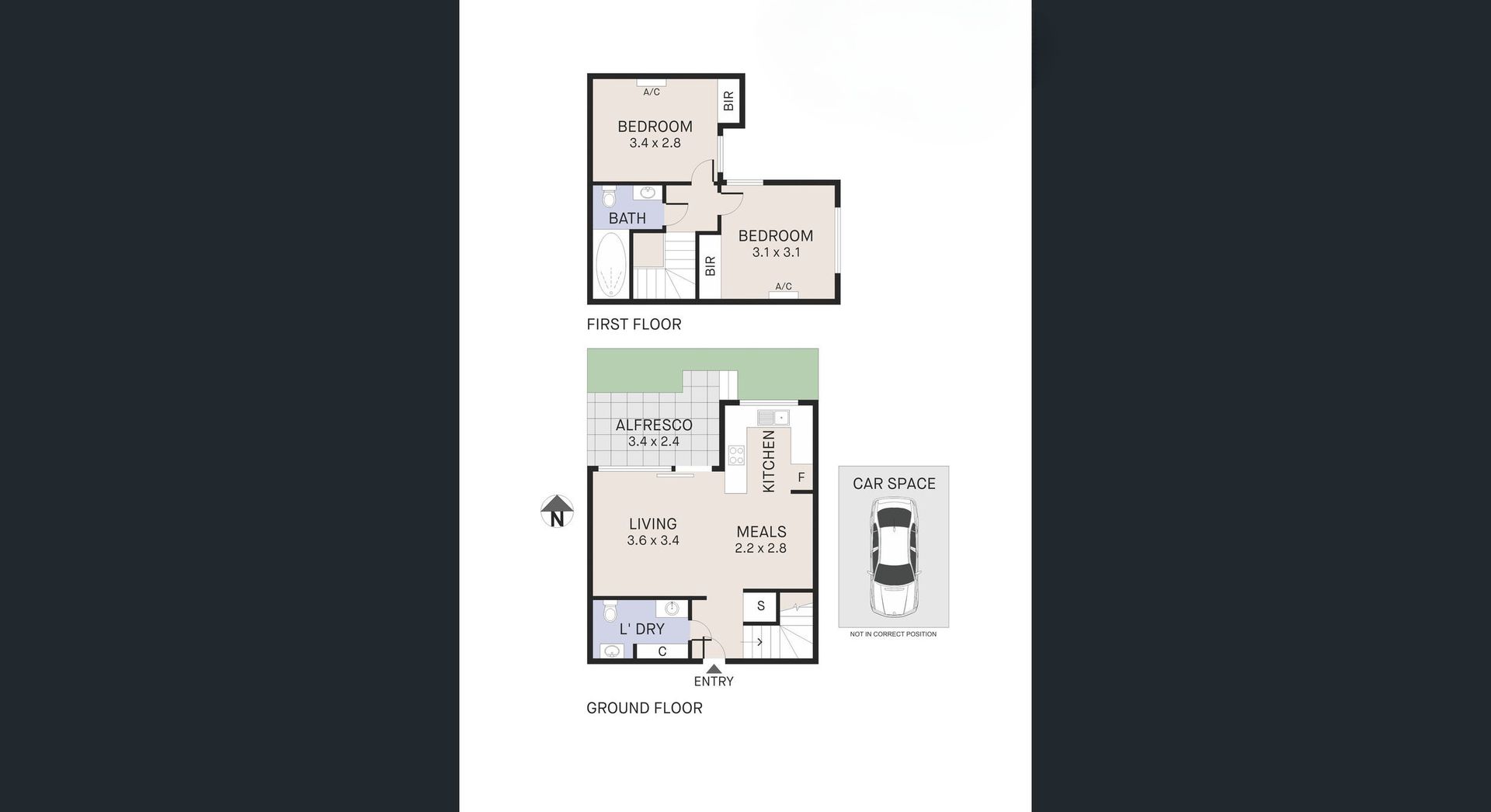 Tucked away towards the rear of a quiet, well-maintained complex, the home welcomes you with light-filled interiors and a warm, contemporary style. The ground floor features an open plan living and dining zone that seamlessly connects to a sleek kitchen with stone benchtops, stainless steel appliances, a dishwasher and ample cabinetry. A dedicated laundry and convenient downstairs powder room make everyday living easier.