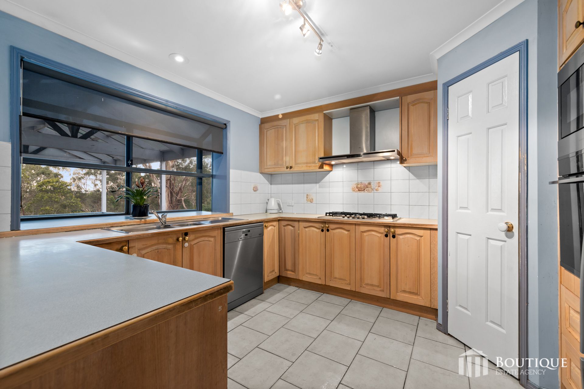 The original kitchen includes a 5-burner gas cooktop, oven, rangehood, dishwasher, breakfast bench and ample cabinetry, with picturesque views across the wetlands.