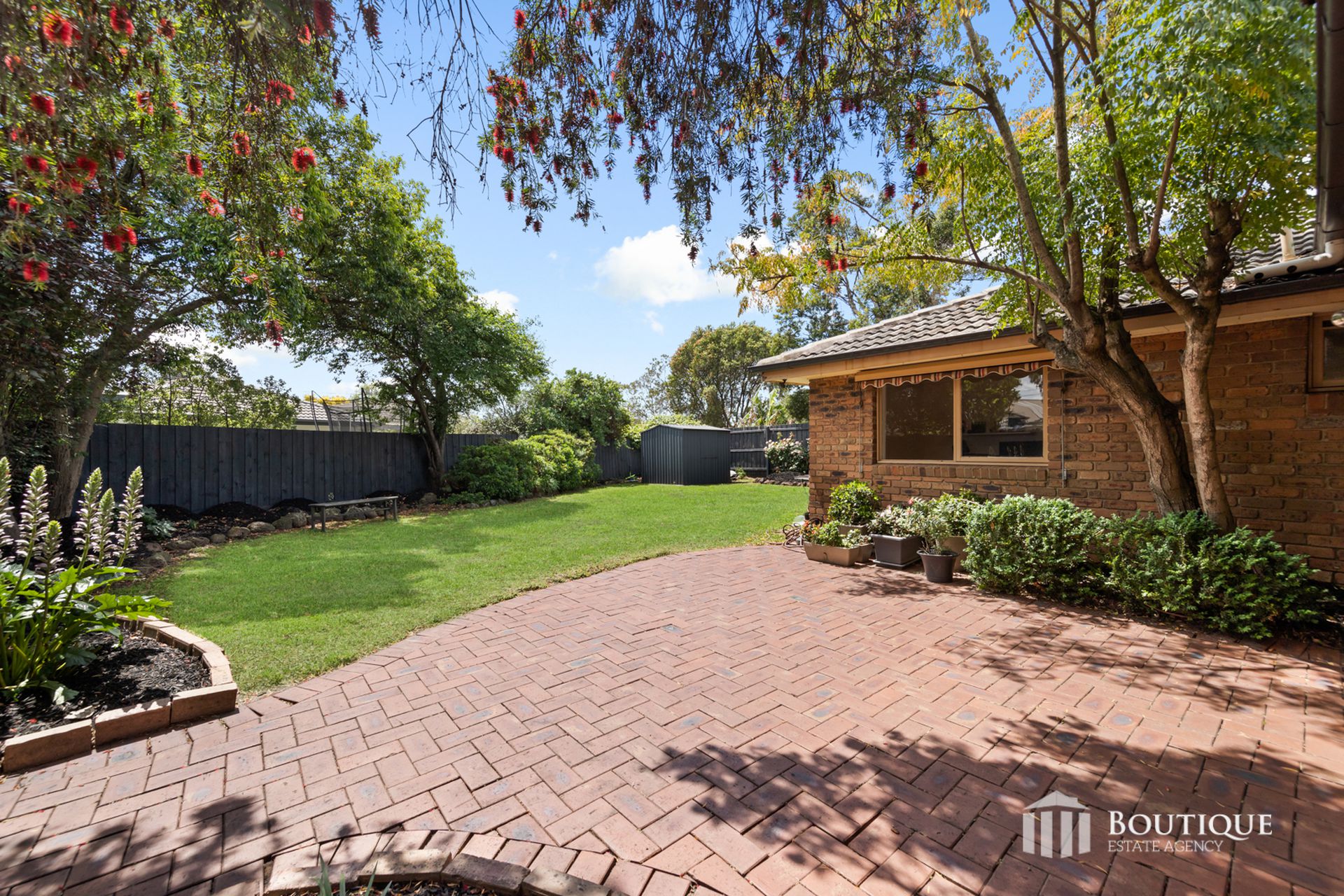 Outside, the home exudes classic charm with its brick veneer façade and terracotta tiled roof, set amidst beautifully landscaped gardens. The expansive backyard offers a safe and inviting space for children to play, while the wide driveway provides off-street parking for up to three cars.