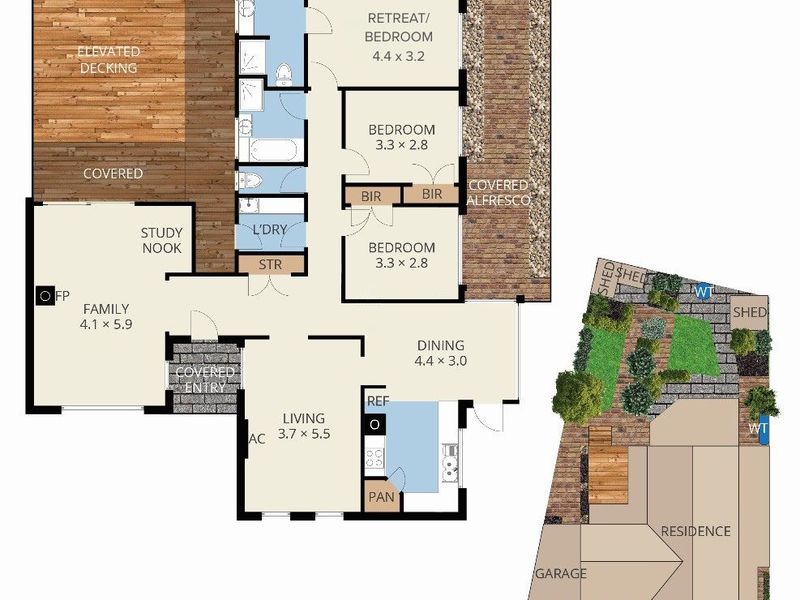 • Covered alfresco, landscaped gardens, and three storage sheds