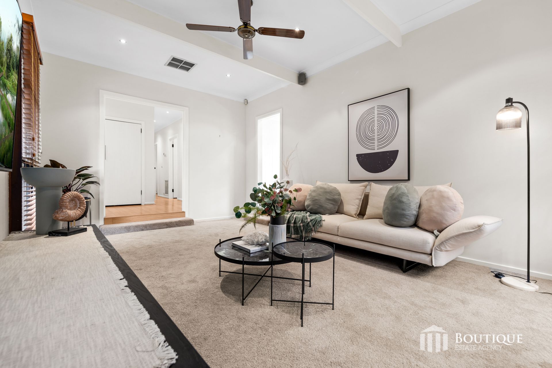 Step inside to discover a traditional yet inviting floorplan with distinct living zones that cater to family life. The sunken formal lounge and living area adds depth and character, offering a cosy place to relax, while the adjoining family and meal areas connect effortlessly with the kitchen, forming the home’s central hub. A study nook overlooks the expansive outdoor deck that oversees the picturesque garden.