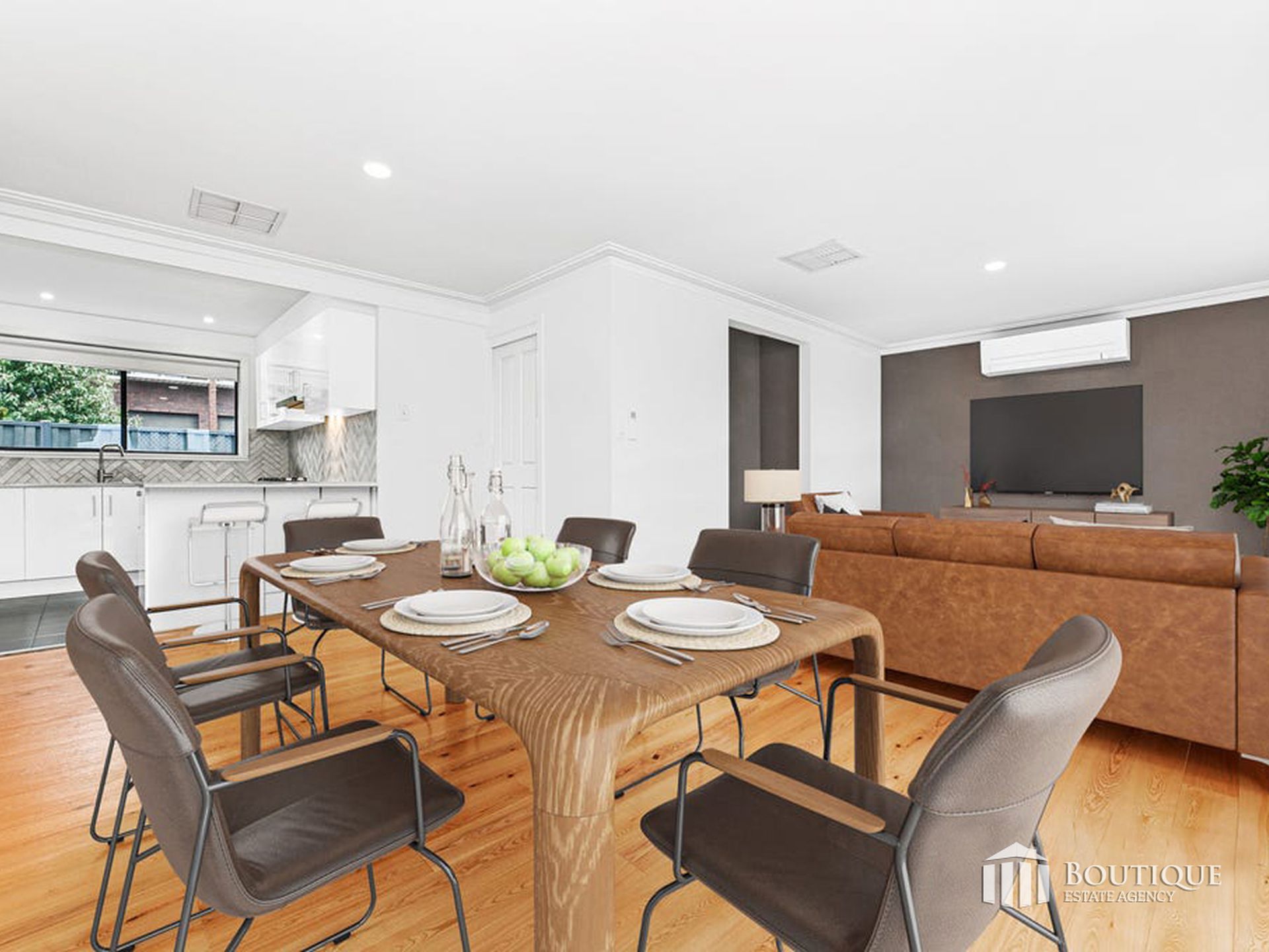 The renovated kitchen is designed for everyday ease and features stainless steel appliances, a breakfast bench, ample storage and a clean modern finish. It connects perfectly with the meals area so that cooking and family time remain seamless.