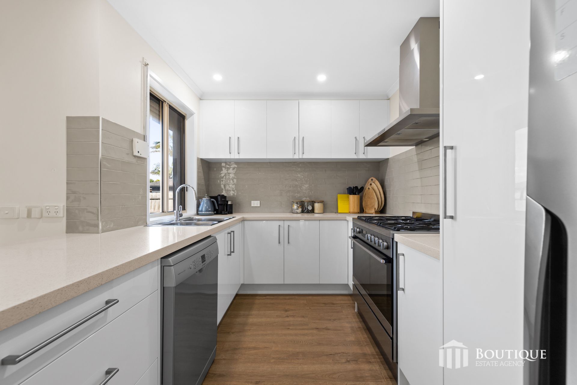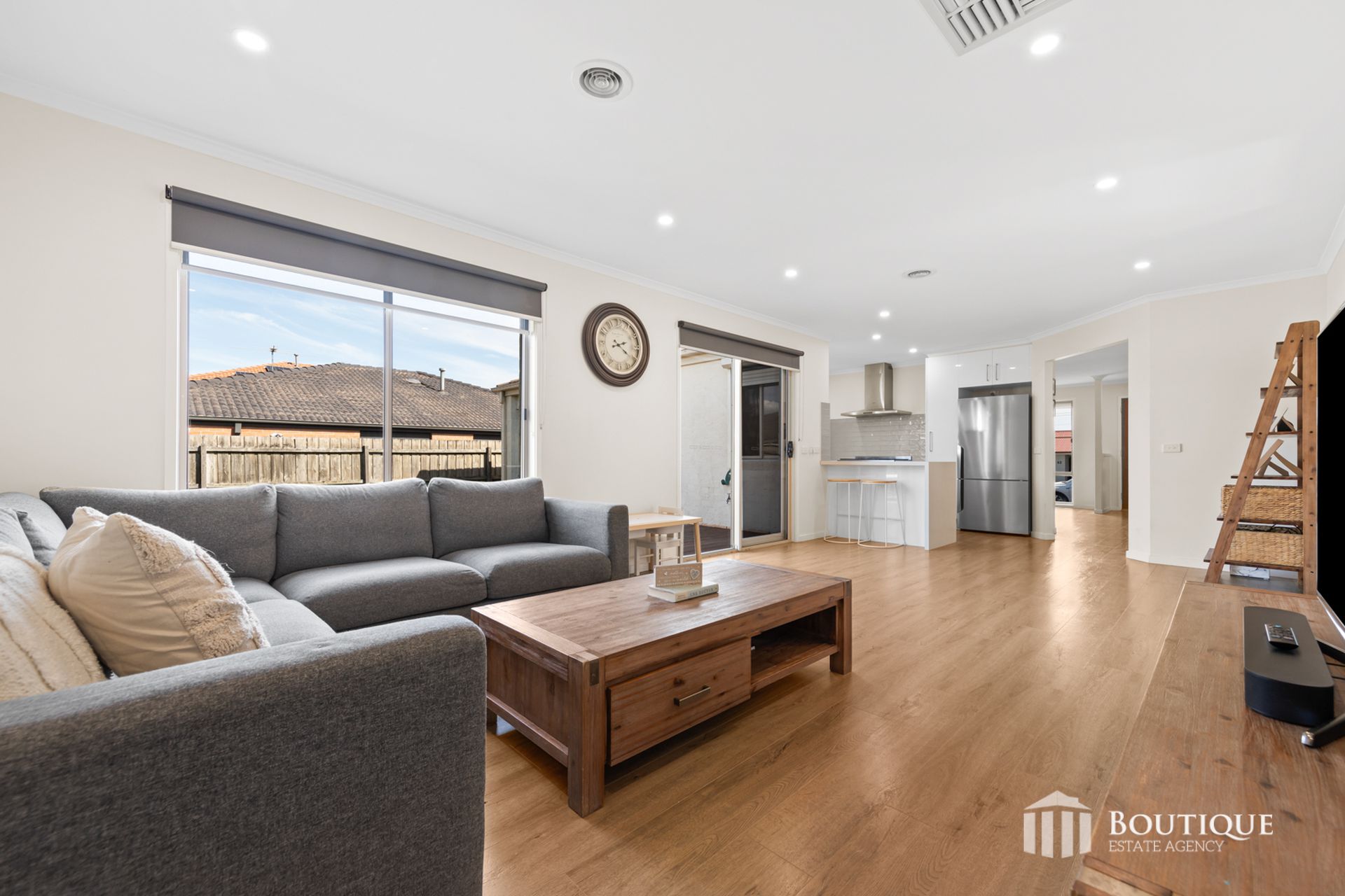 Stepping inside, the home features hardwood flooring throughout, complemented by downlights, enhancing the bright and inviting atmosphere. The spacious living and dining zones provide flexibility for growing families, while the renovated kitchen sits at the heart of the home, complete with a tiled splashback, well-appointed finishes and ample storage.