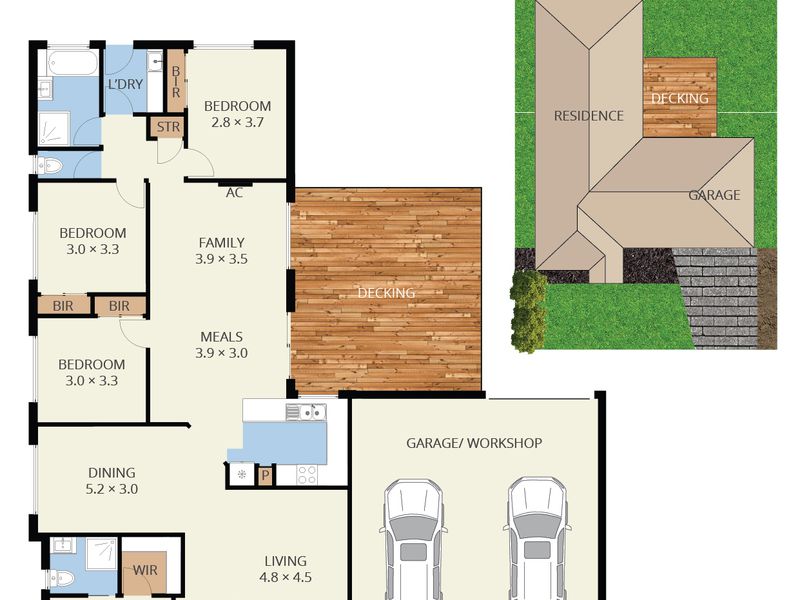 • Remote double garage with backyard access