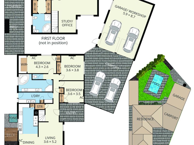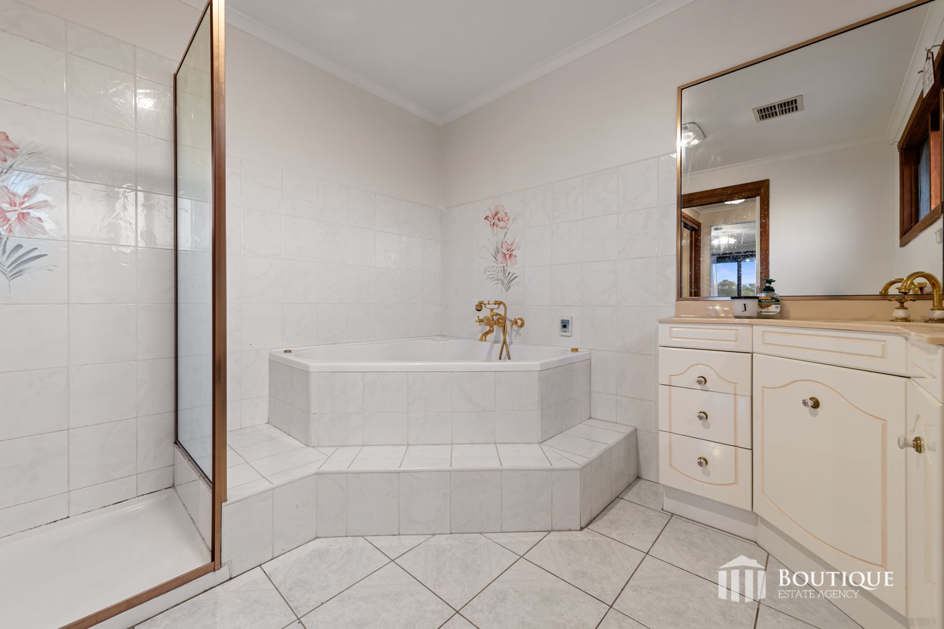 Outdoors, the property is designed for entertaining and family enjoyment. The stunning glass fenced swimming pool is complemented by solar heating, creating the perfect setting for year round use. A covered entertaining area with a built in barbecue overlooks the pool, while a small pond near the laundry adds a unique touch to the garden space. The home also features a four car garage, double carport and an electric front gate, providing ample secure parking for multiple vehicles. Constructed with a brick veneer ground floor, weatherboard upper level and terracotta roof tiles, the home offers both durability and character.