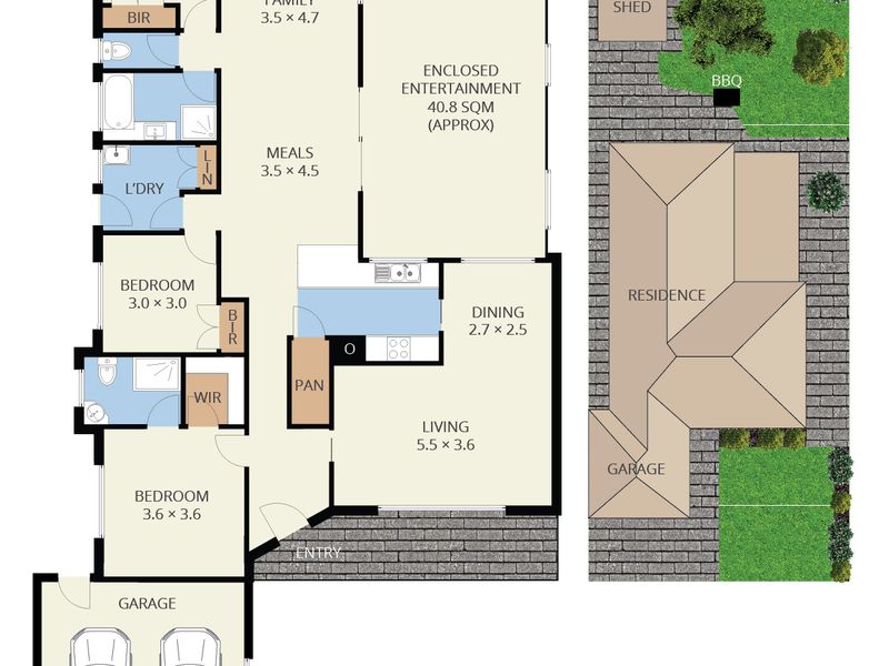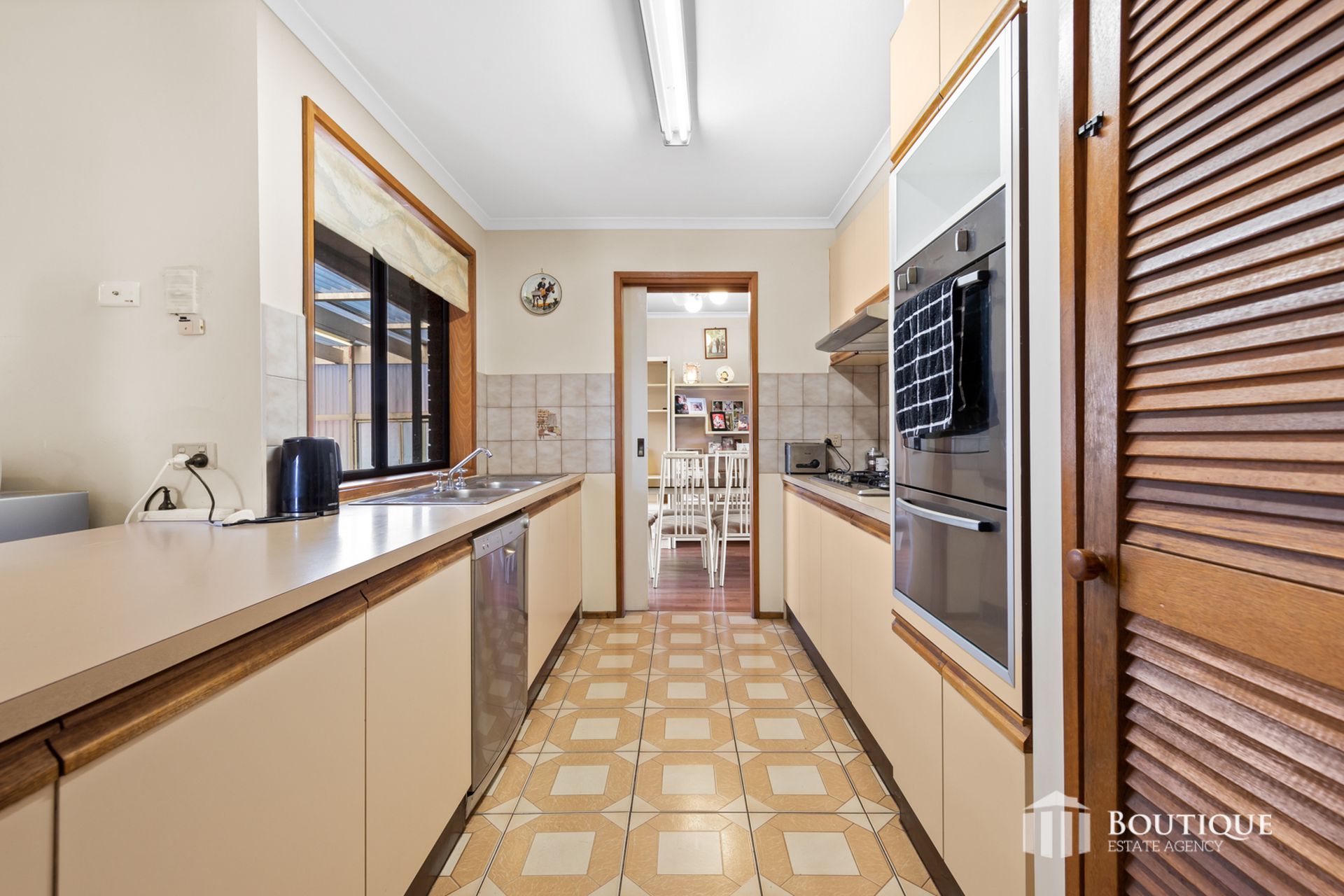 The kitchen is well appointed with tiled finishes, a 5 burner gas cooktop, space for a microwave and a walk in pantry, providing excellent storage and functionality. The home includes three well sized bedrooms, all fitted with built in wardrobes and ceiling fans, with the master bedroom offering a walk in robe and private ensuite with shower and toilet. A central bathroom services the remaining bedrooms and includes a bathtub, shower and wide vanity with ample bench space. A spacious laundry with sink adds further practicality, while ducted heating runs throughout the home for year round comfort.